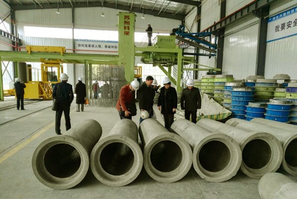 11月9日,行業(yè)資深專家許廣存、王璟山;中國混凝土水泥制品協(xié)會(huì)副秘書長張吟秋;蘇州水泥制品研究院副院長奚飛達(dá);國家檢測中心主任談?dòng)廊、湯文友高工;行業(yè)協(xié)會(huì)專家呂根喜、田培云、肖振華;河南省協(xié)會(huì)王世民主任;《混凝土水泥制品》總編助理高穎;行業(yè)協(xié)會(huì)專家、《預(yù)制混凝土箱涵》標(biāo)準(zhǔn)起草負(fù)責(zé)人沈麗華、褚建中等一行專家現(xiàn)場參觀了我公司最新研發(fā)的DN300-1500全自動(dòng)鋼筋混凝土排水管生產(chǎn)線。