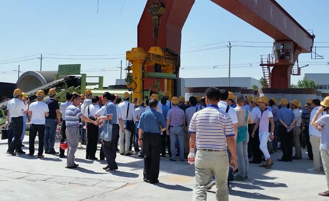 6月11日,會議代表參觀了“鄭州市匯通水泥制品有限公司”,由我公司最新研制開發(fā)的、 “高頻振動成型、垂直翻轉(zhuǎn)、一體脫模管井裝備”進行了現(xiàn)場生產(chǎn)演示。
